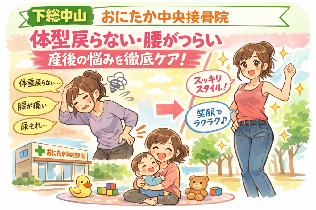 【下総中山】産後矯正ならおにたか中央接骨院|体型が戻らない・腰痛改善は6ヶ月以内がカギ 出産、本当にお疲れさまでした。 でも今—— 妊娠前のズボンが入らない 抱っこで腰が限界 股関節が不安定 尿もれが気になる 体重は戻ったのに体型が違う その悩み、... -