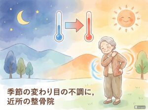 昼間は暖かいのに、朝晩は冷える。この気温差が血流を乱し、筋肉をこわばらせ、腰・膝・肩にじわじわ負担をかけています。