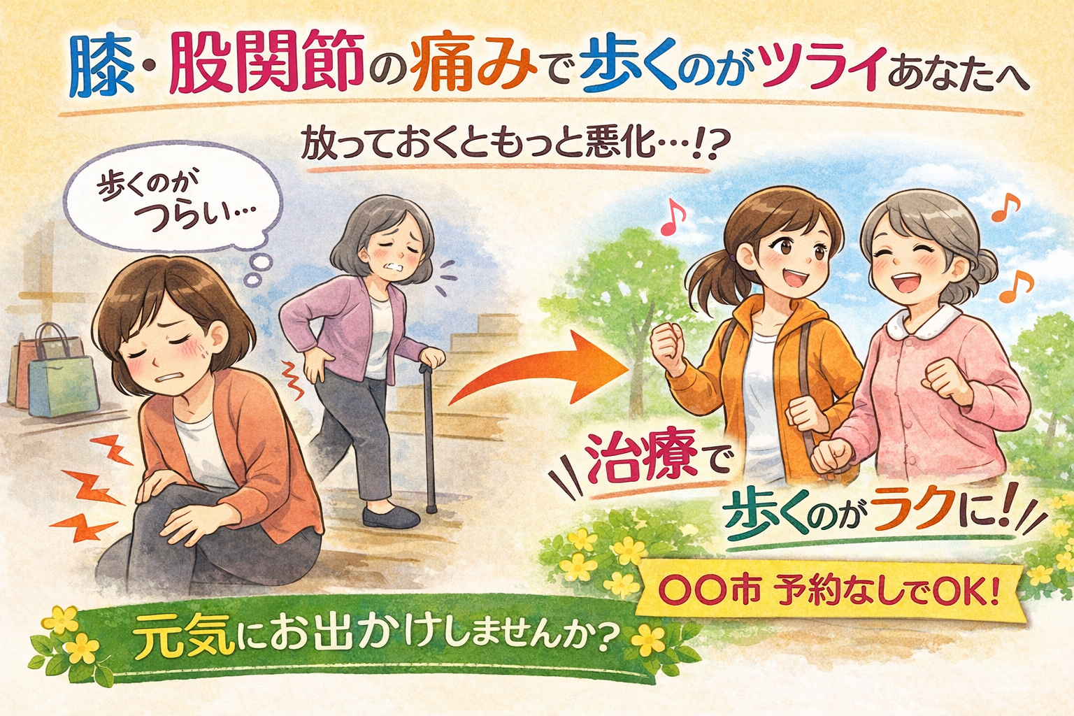 膝・股関節の痛みで歩くのが億劫になっていませんか?