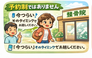 予約はいりません。お電話で状況をお伝えいただいてからでも、直接ご来院でも大丈夫です。