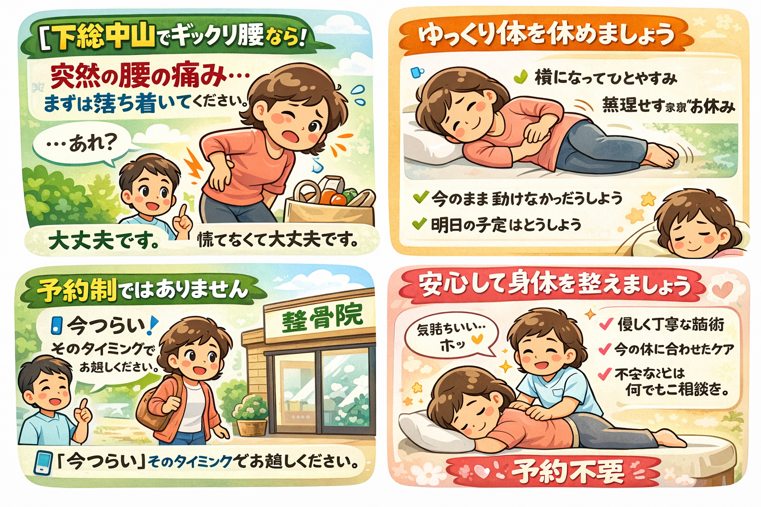 【下総中山でギックリ腰なら】突然の腰の痛み…まずは落ち着いてください。