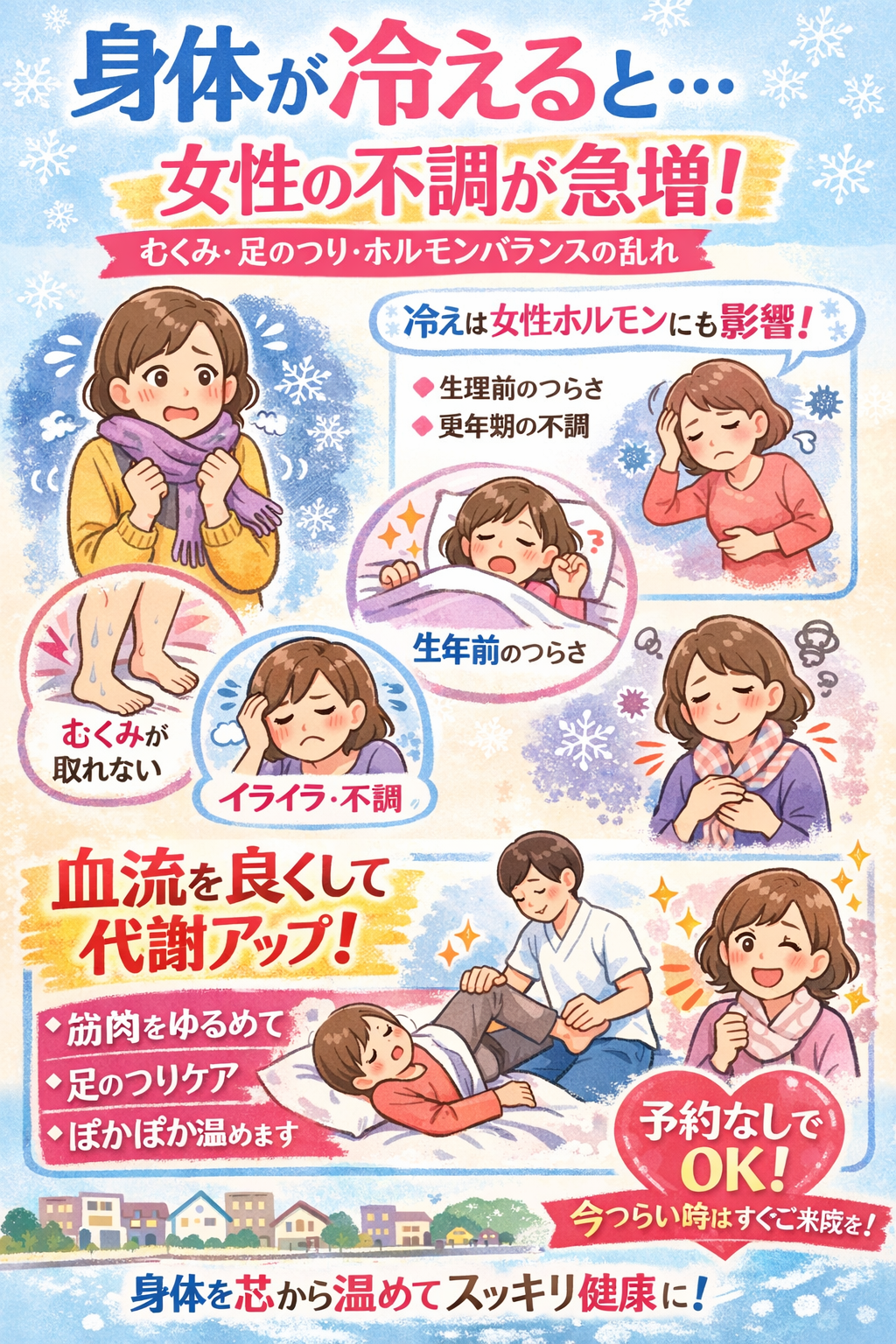 特に女性の場合、冷えは女性ホルモンのバランスにも影響します❤️‍🩹