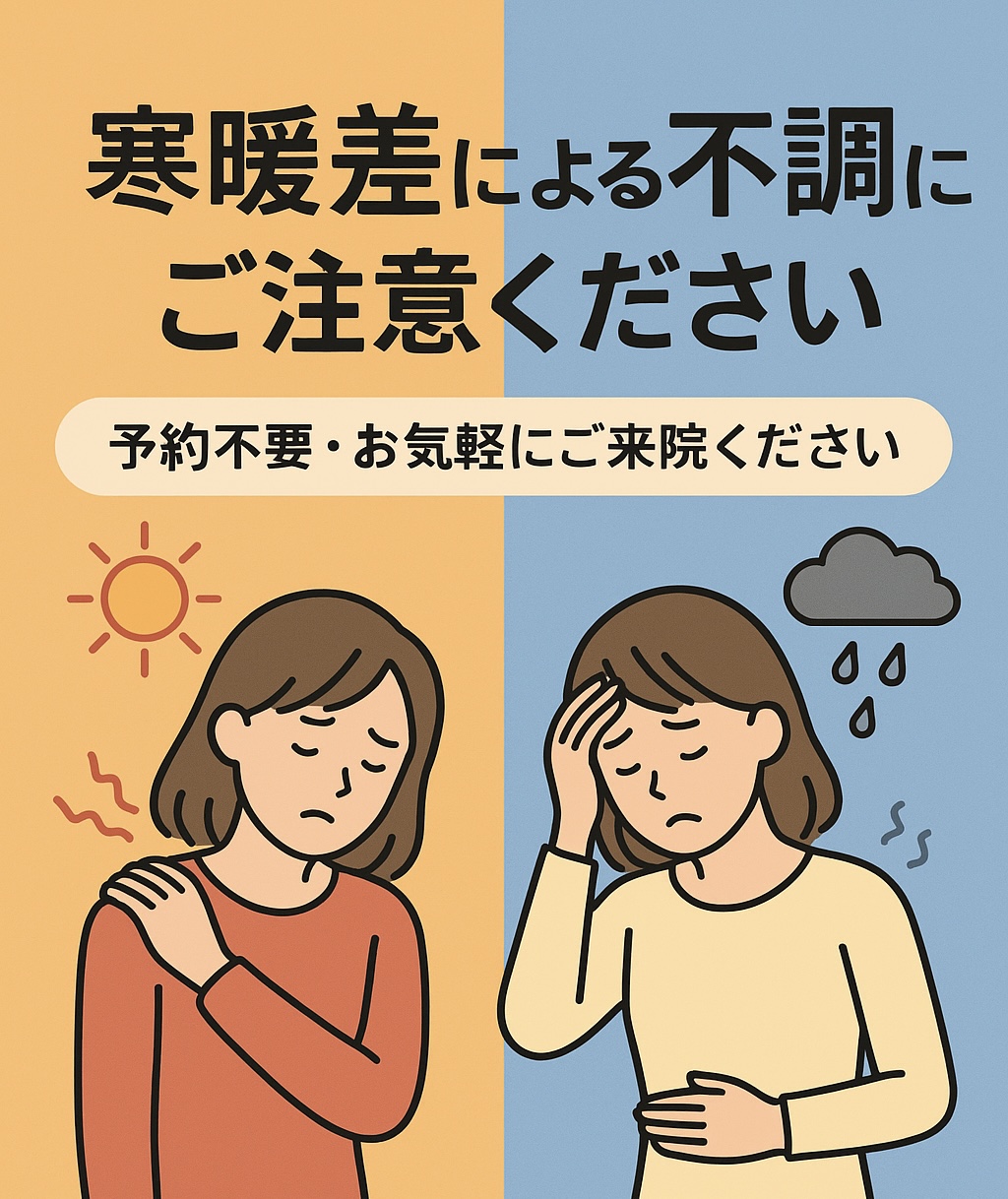 寒暖差が大きいこの時期は、体の不調が出やすいタイミングです。